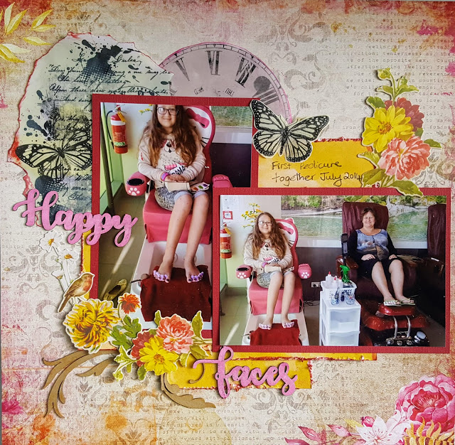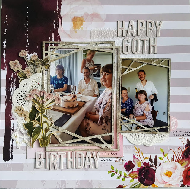 The theme of the weekend was botanicals, and they did not disappoint with some fantastic papers from their new label Three Quarter Designs. We spent 2 mornings creating pieces for our layouts and then the afternoons putting it all together.