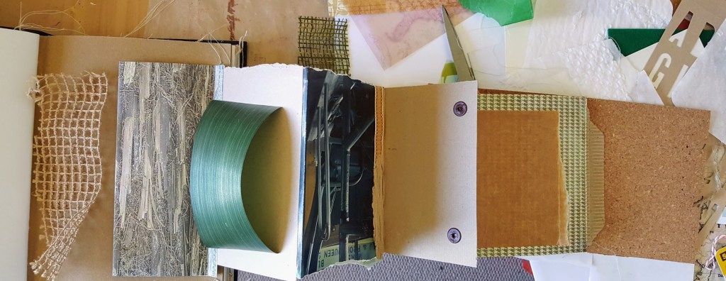 Started out looking for all kinds of ‘natural’ coloured materials as a base, and I decided on kraft, green, or grey colours as the base. Then blue, greens and golds for my three colours.