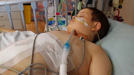 In between these years, there were many periods that the skin broke down and it required daily dressing changes. And for us to keep Mitchell from scratching and touching. The omphalocele has just been a part of his journey, the effect that this has had on him has meant a tracheostomy for breathing for 13 years and an NG tube since birth.