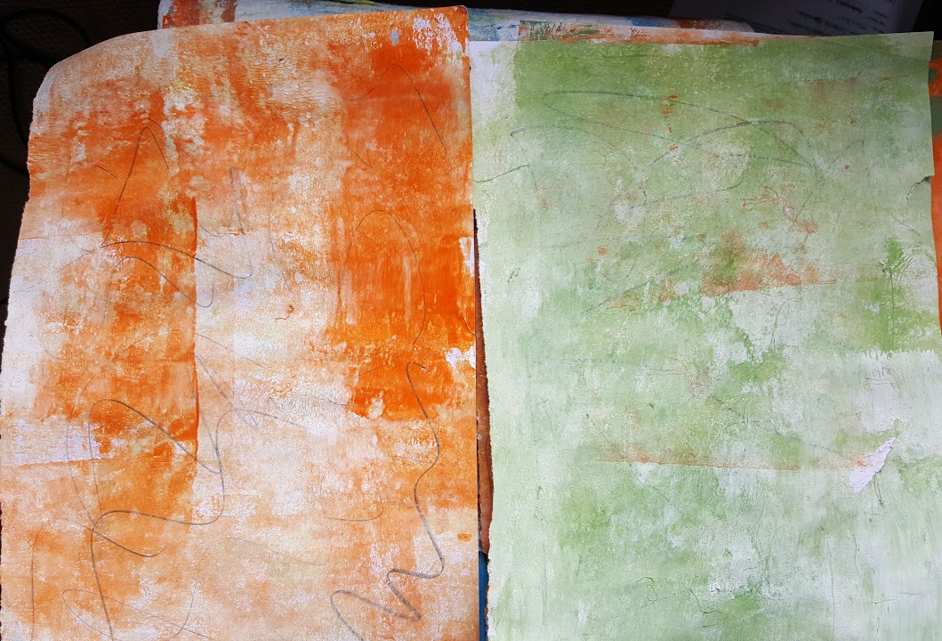 - Scribble randomly and brayer over the top, on 4 pieces of paper, front and back
