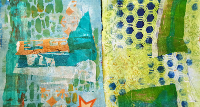 - Make gelli prints on deli paper.. I did not have, so I substituted tissue paper. Not quite as effective, but we don’t have the option of buying supplies at the moment.