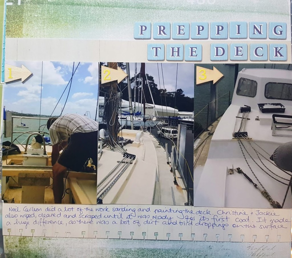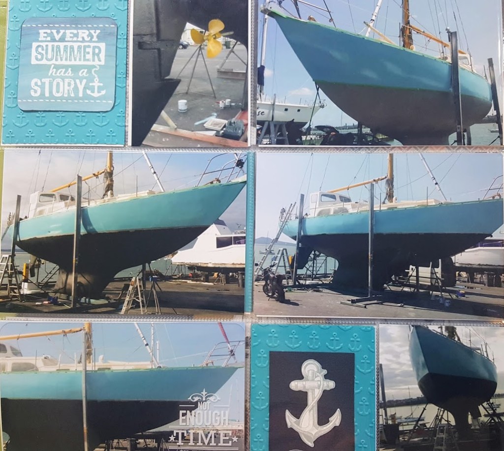 We took over the yacht in 2015 and she was sited in Kawakawa Bay at the time. Our first venture out to the boat in the little inflatable with Christine is recorded below in layouts I did at the time.