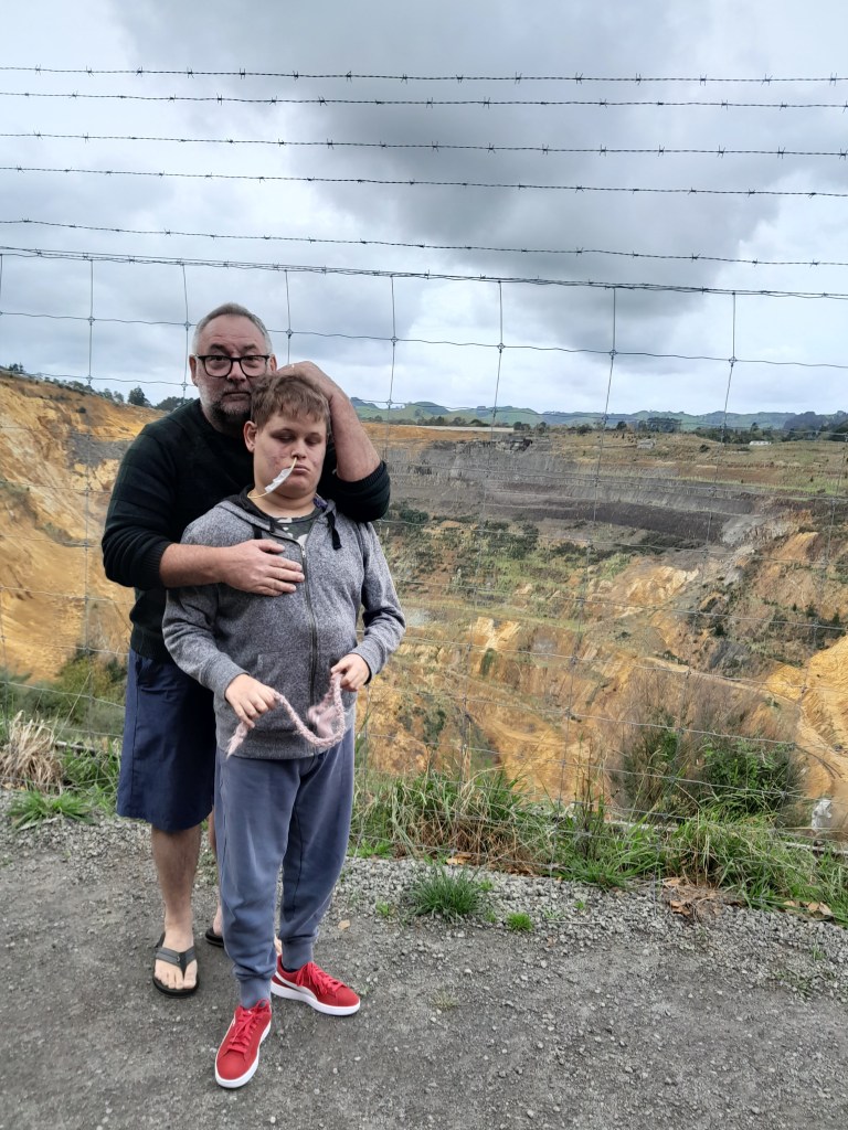Waihi is about 1.5 hours from home and an easy drive, which includes the lovely Karangaheke Gorge. I have shared this area before when we have visited enroute to Waihi or Tauranga. We set off on Friday afternoon, waiting for Mitchell and his carer who had worked Thursday night to wake. Our initial intention was to stop at Hamilton Gardens or Zealong Tea enroute but as we were a bit later, it just came down to a quick late lunch stop. We aimed for the Woodturners cafe just before Ngatea, to find it was closed, so diverted back to the Native Palm Cafe, to try somewhere new. This was an interesting cafe – with a large outdoor courtyard for eating, and an eclectic indoor area. It has become so popular to decorate using retro and mismatched items now, that it almost feels common. The staff were very friendly and we ordered off the menu, a toastie, bacon and egg muffin and an eggs benni. Mitchell had a big slice of cheesecake. It was all pretty average fare, but we did get a free chocolate milkshake as they had made an extra and offered it to our table.