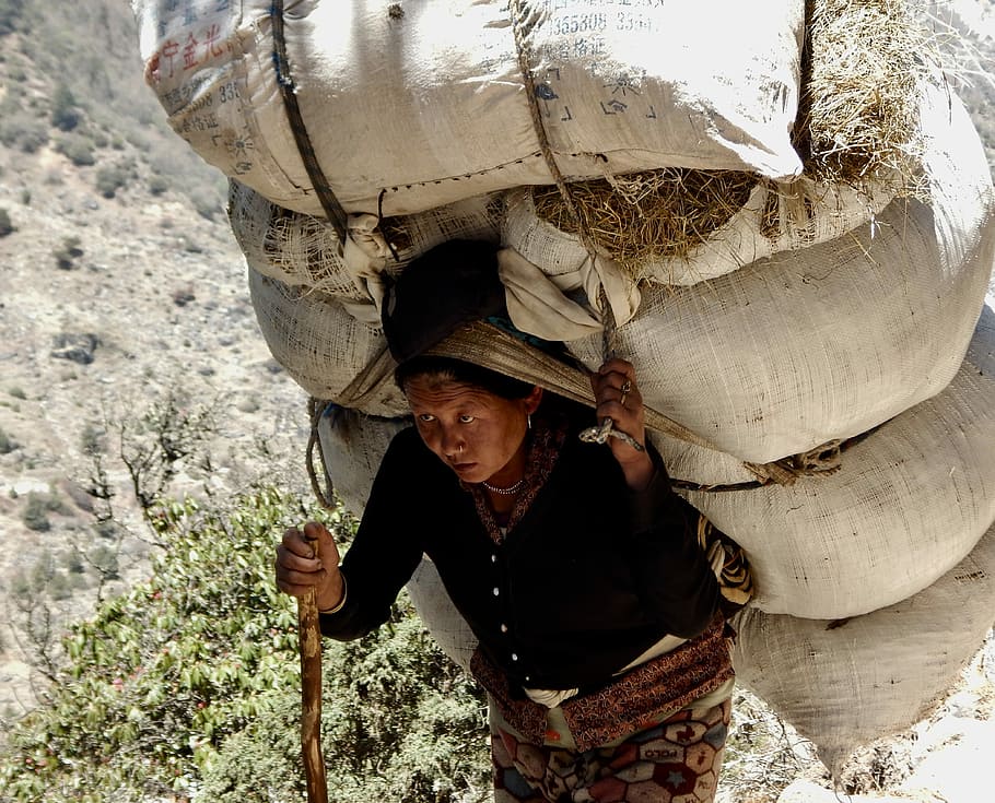 Women (or men) would not be expected to lift and carry a load like this here in NZ. In fact, there are usually stringent health and safety regulations to ensure this does not happen .